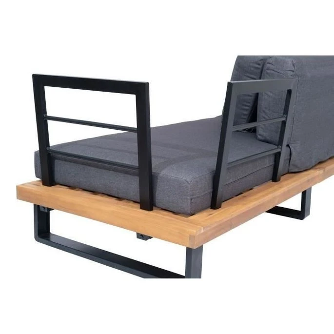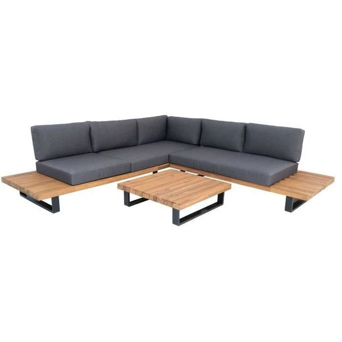 ALUXE Salon De Jardin En Bois D’acacia Et Pieds En Aluminium, Canapé D’angle Et Une Table Basse