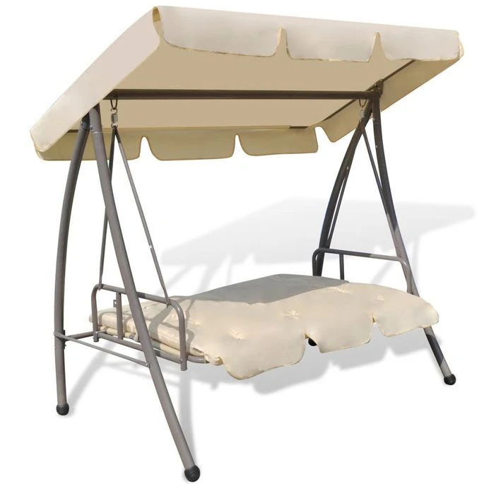 Matériau de la balancelle : cadre en acier enduit de poudre + auvent en tissu