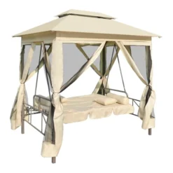 Balancelle Suspendue D’extérieur 3 Places Et Auvent Blanc Sable