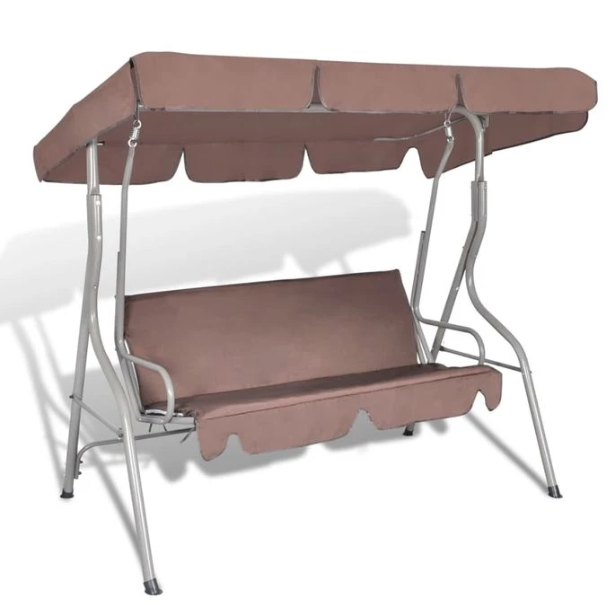 Une balancelle double avec un coussin d’assise, un coussin de dossier et un auvent