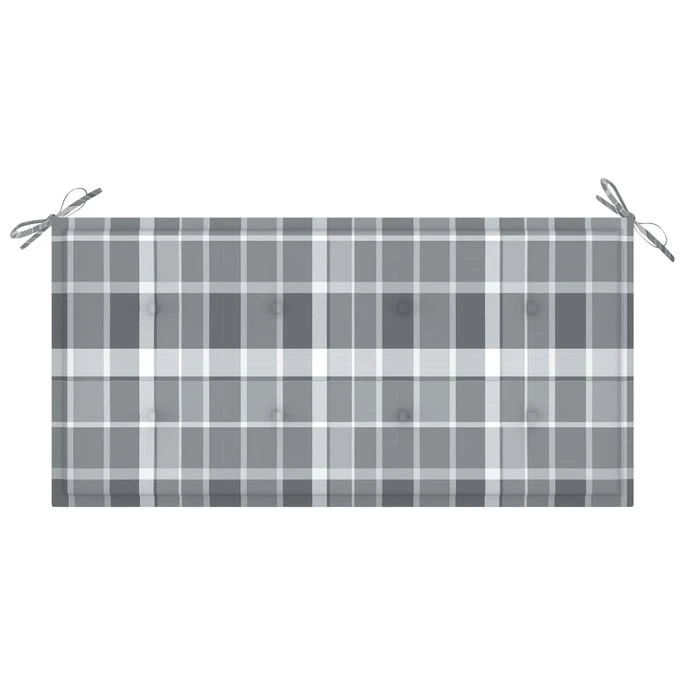 Le coussin présente un motif à carreaux gris