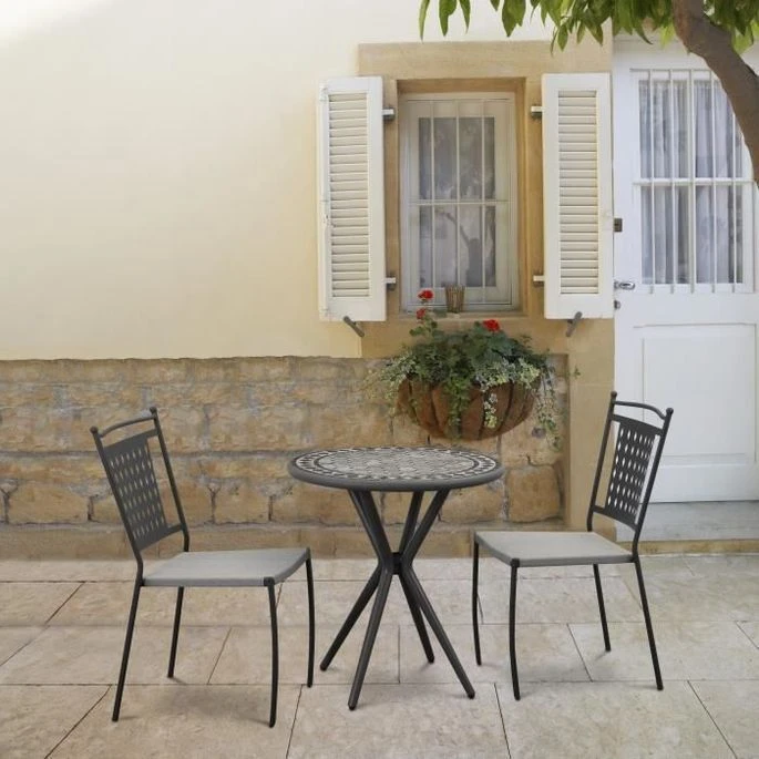 Lot De 2 Chaises De Jardin En Bois D’acacia FSC Et Assise Textilene – 50 X 57 X 90 Cm – Gris