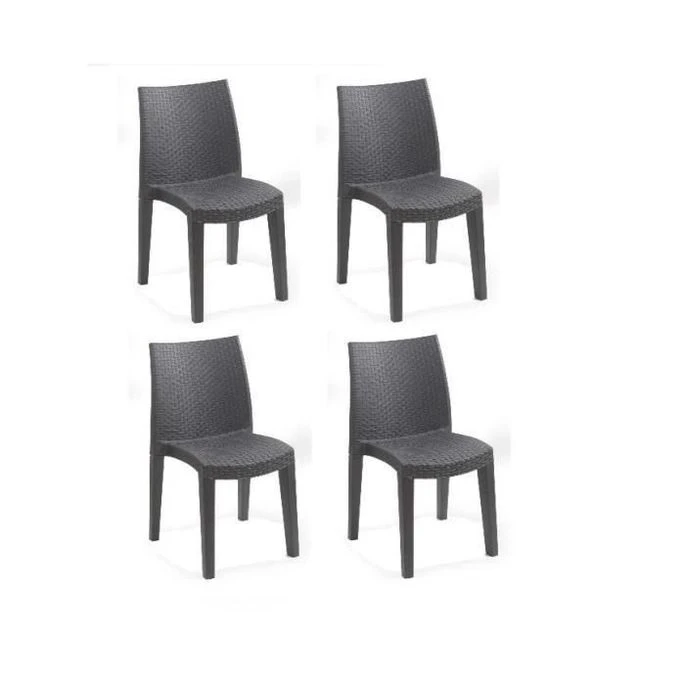 Lot De 4 Chaises De Jardin Clio – En Résine Tressée – 55 X 46 X 85 Cm – Gris Anthracite